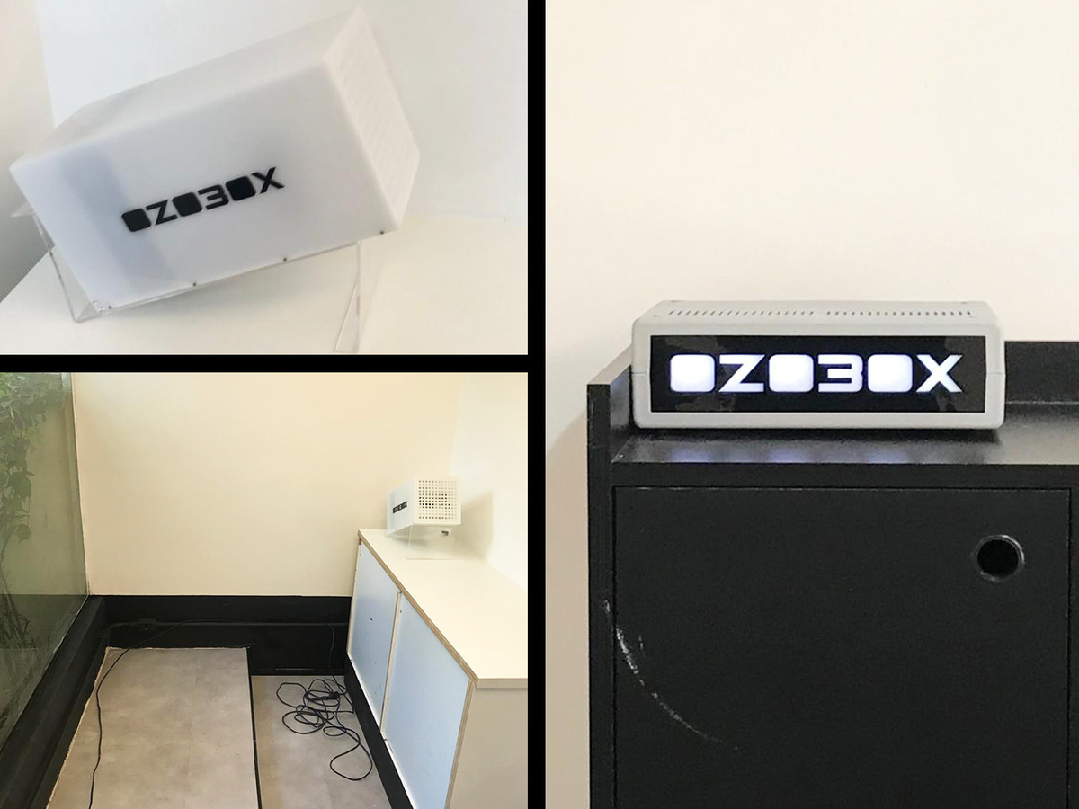 O OZOBOX é um equipamento que gera Ozônio no ar por meio de um processo elétrico que recombina as moléculas de oxigênio em ozônio (O2 → O3).